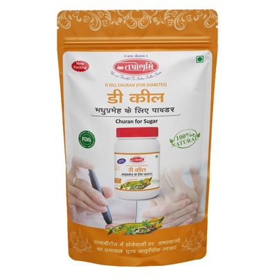 Tapobhumi D Kill Powder is an Ayurvedic herbal formula designed to manage diabetes by controlling blood sugar levels and preventing fluctuations, often using ingredients like Jamun. It helps improve insulin sensitivity, supports metabolic health, and is used to support long-term diabetic care through natural ingredients.