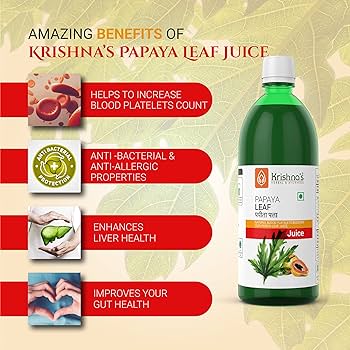 Powerhouse of vitamins : Krishna’s Herbal & Ayurveda Papaya Leaf Juice contains pure extracts of papaya leaf with all their nutritional values intact. This juice is rich in enzymes, such as papain and hence, aids in digestion and Manage bloating and other digestive disorders.
